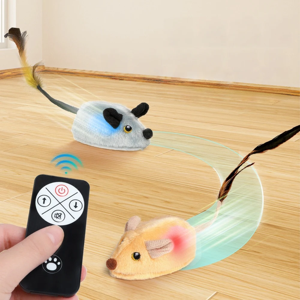 Automatic Sensing Moving Mouse Interactive Cat Toys Electronic Remote Squeaky Cat Toy For Kitten USB Rechargeable Pet Plush Toy
